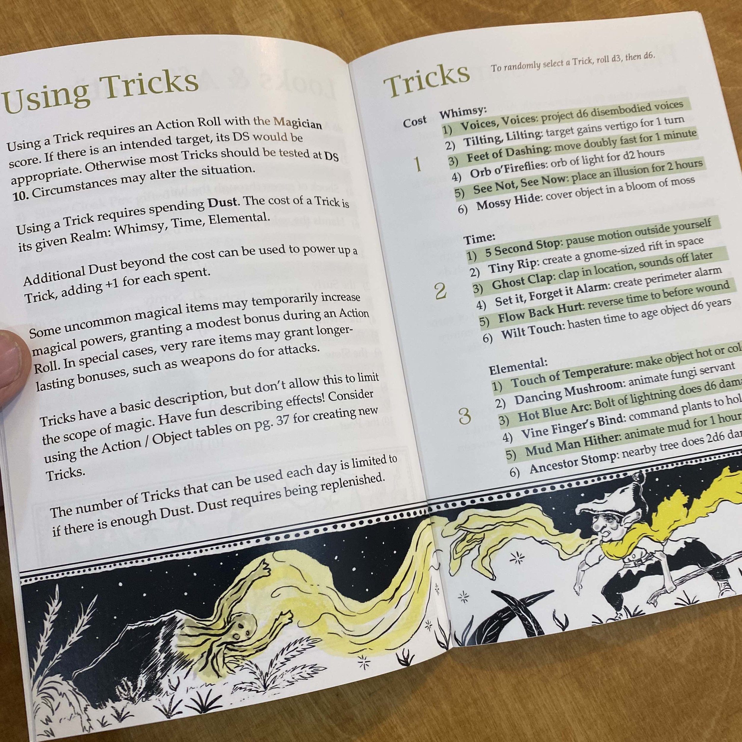 Gnome is a 40 page hack of Tunnel Goons by Nate Treme. This means it uses 2d6 as the main resolution mechanic to reach or achieve a Difficulty Score. This has the novel effect of reducing a target's difficulty score upon the next attempt, hence building in weakening and attrition.